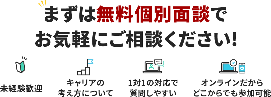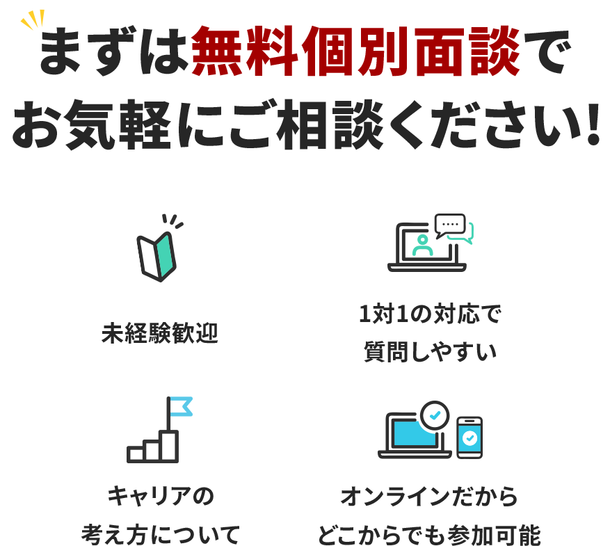 本当に転職できるのか心配があったためセミナー参加した際、未経験からWebマーケターとして転職するための最短ルートを教えているということをおっしゃられてたので、