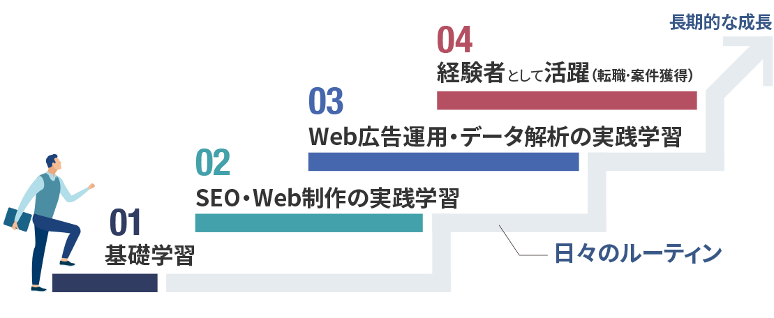 3ヶ月の受講期間でWebマーケティングについて様々なことを学ぶことができました。仕事をしながら受講しているので、計画を立てて管理する力が身についたと感じます。