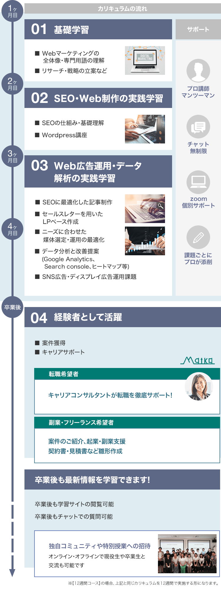 実際に転職を目指しているWebマーケティングの現場で使うツールの使い方だとか実践的なことを体験しながら学ぶことができて、