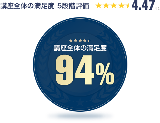※1.アンケート実施:653名/集計期間2021.06.25~2024.09.30 項目:「講座全体の満足度 5段階評価」