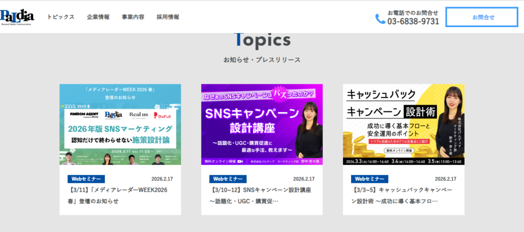 | SNS・販促 | PaLdia(パルディア) | 最新のSNSキャンペーン手法を知りたい方 | オンライン | 内容による | オンライン | 株式会社PaLdia/Webセミナー |