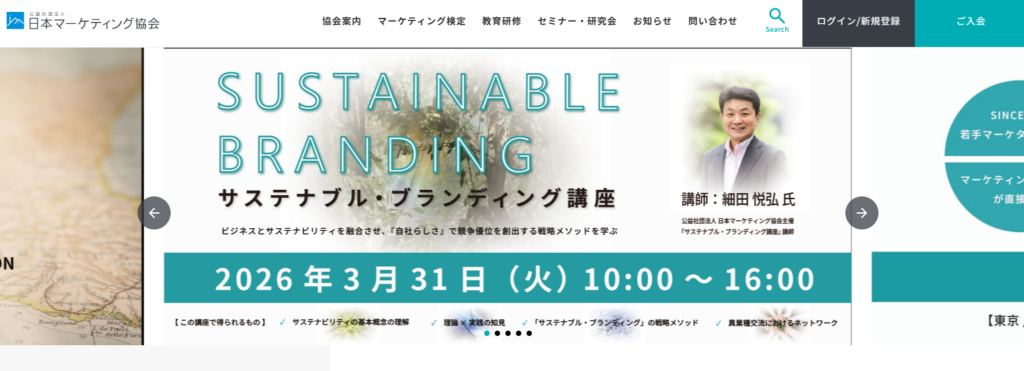 | 特徴 | 日本を代表するマーケティング団体として、学術的な理論と大手企業の成功事例を融合させた質の高いセミナーを開催。Webだけに閉じない「広い視野でのマーケティング」を習得できるのが強みです |