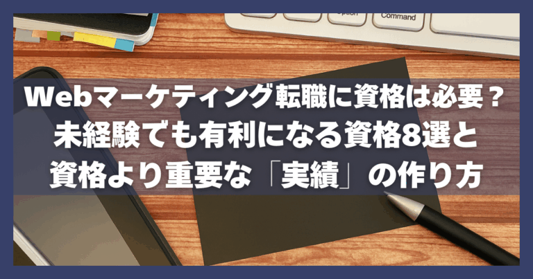 Webマーケティングへの転職を考えているものの、どの資格が本当に役立つのか迷っていませんか?「資格は必要ない」という声もあれば、「資格があれば有利」という意見もあり、結局どちらを信じればいいのか分から … 続きを読む Webマーケティング転職に資格は必要?未経験でも有利になる資格8選と資格より重要な「実績」の作り方
