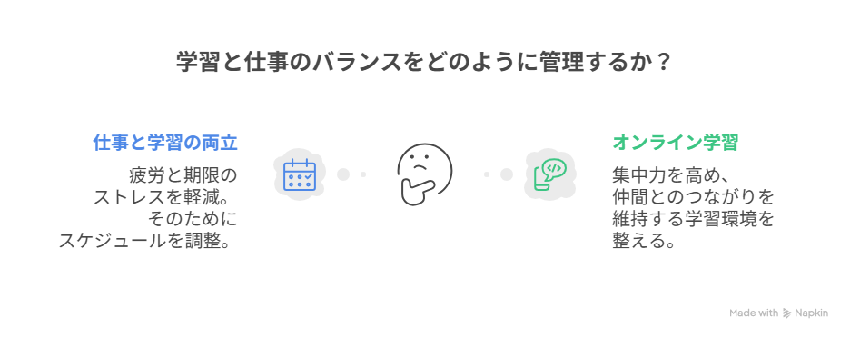 また、オンライン学習は自己管理力が試されるため、集中できる環境づくりが重要です。