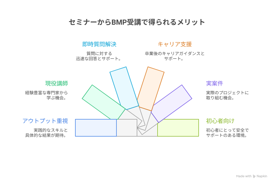 BMPの評判に共通しているのは「短期間で実践力をつけ、そのままキャリアにつなげられる」という点です。