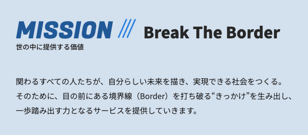 “Break The Border” という理念の通り、枠を超えて人と組織の可能性を解き放つ存在へ。
