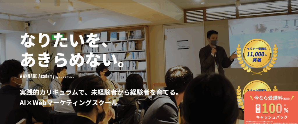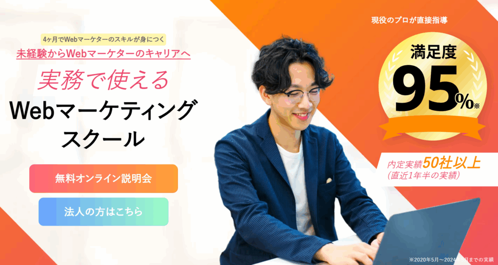 転職成功率98%を誇る、転職特化型Webマーケティングスクール。
