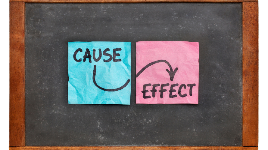 「左の矢印は時間の流れを示し、上の矢印は成果への影響を表しています。」