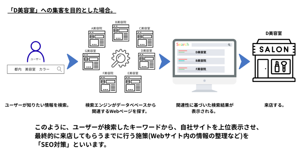 SEO対策とは、Googleなどの検索エンジンにあなたのサイトを正しく評価してもらい、自分が伝えたい情報をユーザーにしっかり届けられるようにする仕組みです。